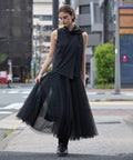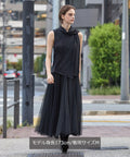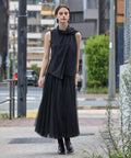 タートルネックやシアートップスをインして、立体的なレイヤードに。