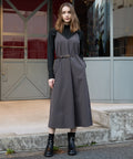 身体のラインを拾いにくい、程よい落ち感のあるシルエットが女性らしさを引き立てます。