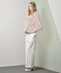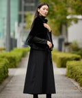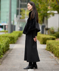 細身のパンツを合わせれば、ケープのボリュームを引き立てたすっきりシルエットに。