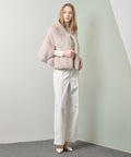 カラーを揃えたワントーンコーデに合わせれば、質感の違いが際立ち、より洗練された印象に。