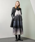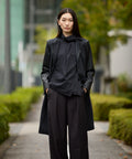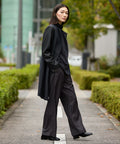 シンプルなシルエットながらも存在感のあるモードな印象に。